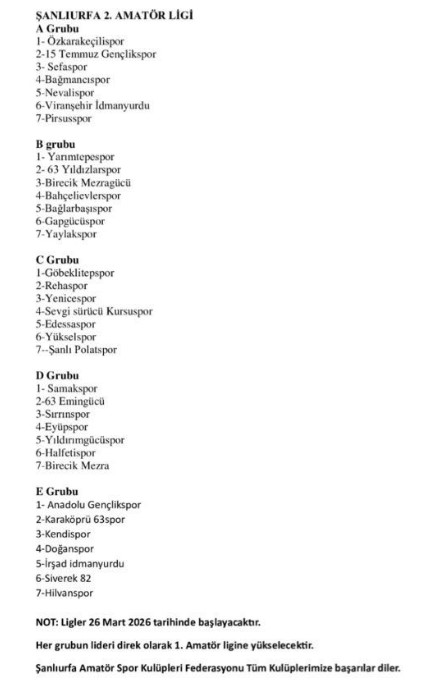 2025&2026 Şanlıurfa Amatör futbol sezonun Gençlerimize herkese hayırlı ve uğurlu olmasını temenni ederiz.