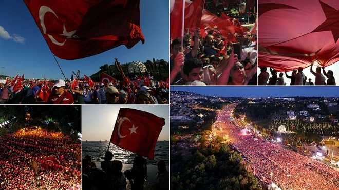 Vatandaşlar, "Katiller millete hesap verecek", "Tek millet, tek bayrak, tek vatan, tek devlet", "Darbeye kalkışan eller kırılsın" sloganları ve tekbirlerle Konak Meydanı'na kadar yürüdü.