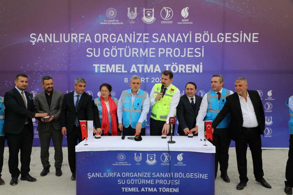 Kent ekonomisinin can damarı Şanlıurfa Organize Sanayi Bölgesi, Tarıma Dayalı İhtisas Organize Sanayi Bölgesi ve Gıda İhtisas Organize Sanayi Bölgesi’nin su ihtiyacını karşılayacak olan “Şanlıurfa Organize Sanayi Bölgelerine Su Götürme Projesi” temeli düzenlenen törenle atıldı.