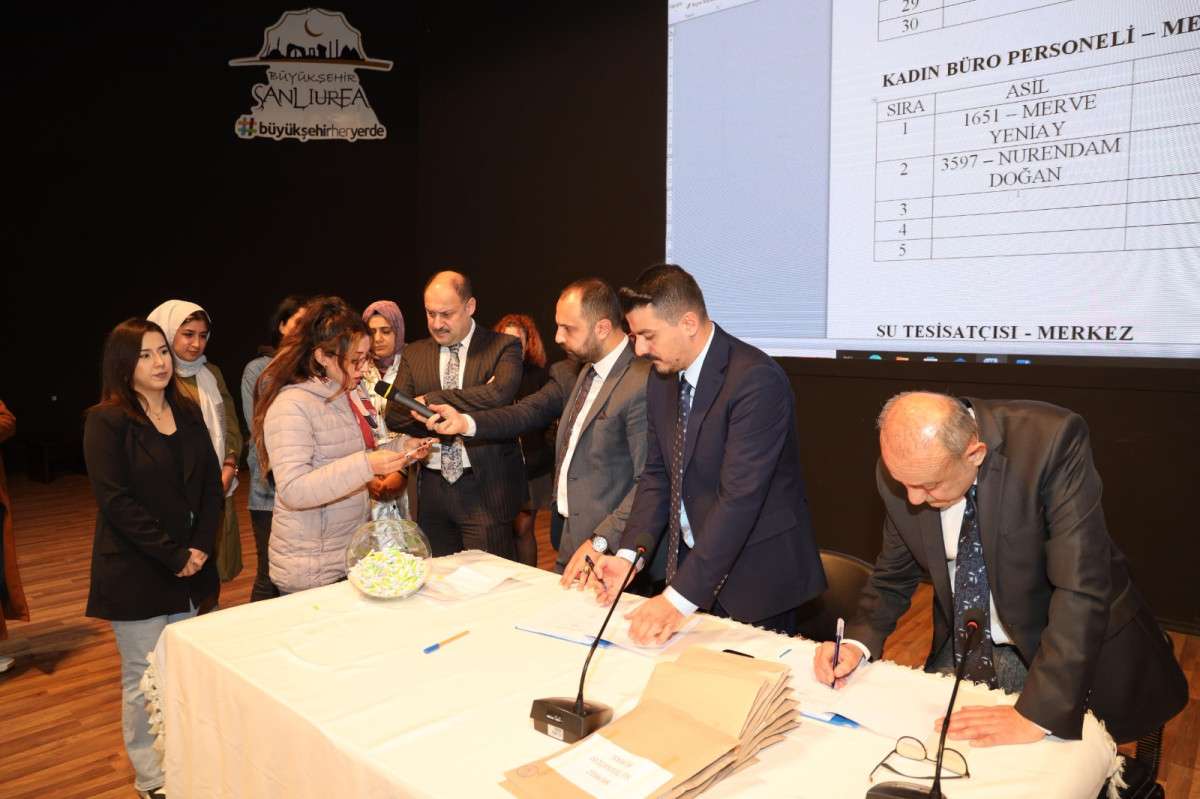 Şanlıurfa Büyükşehir Belediyesi 10 aylık süreyle çalıştırılacak su tesisatçısı, beden işçisi ve büro personeli alımı için noter huzurunda şeffaf bir şekilde canlı yayınla kura çekimi ile gerçekleştirdi.