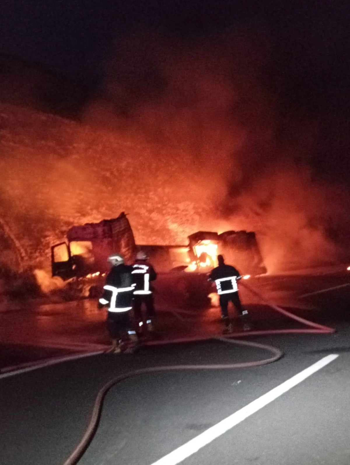 Devrilen akaryakıt tankeri alev aldı