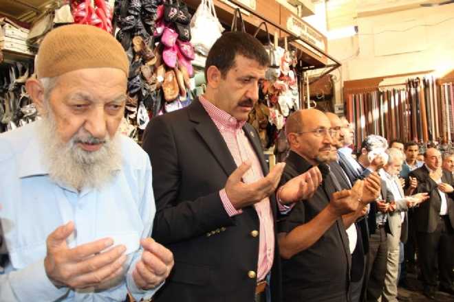 Eyyübiye Belediye Başkanı Mehmet Ekinci, aşağı çarşı diye tabir edilen birçok alış veriş pazarında denetimlerde bulundu. Kunduracılar Pazarında haftada iki gün düzenlenen bereket duasına katılan Başkan Ekinci, esnaf ile birlikte ellerini semaya açıp bereket duası yaptı.