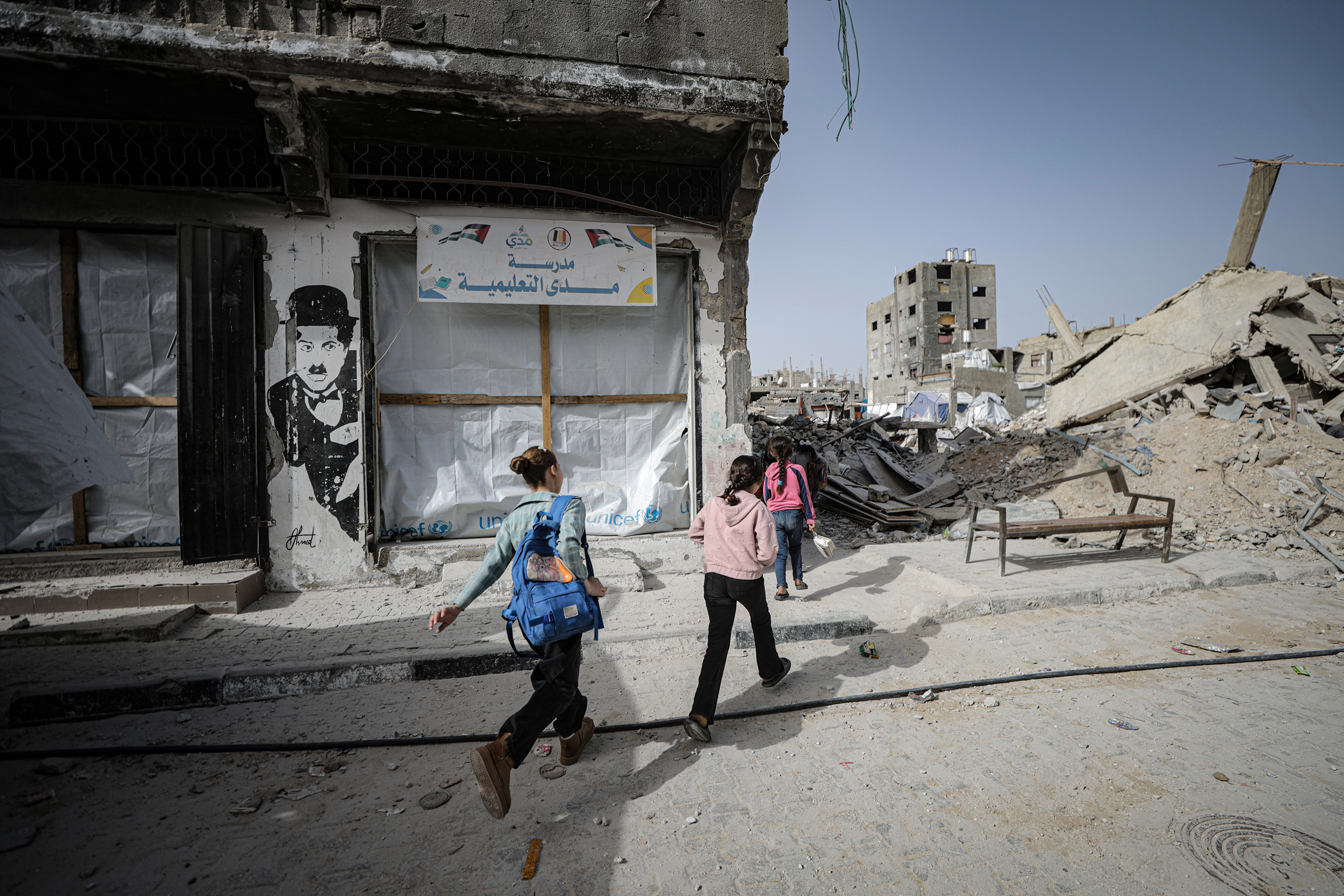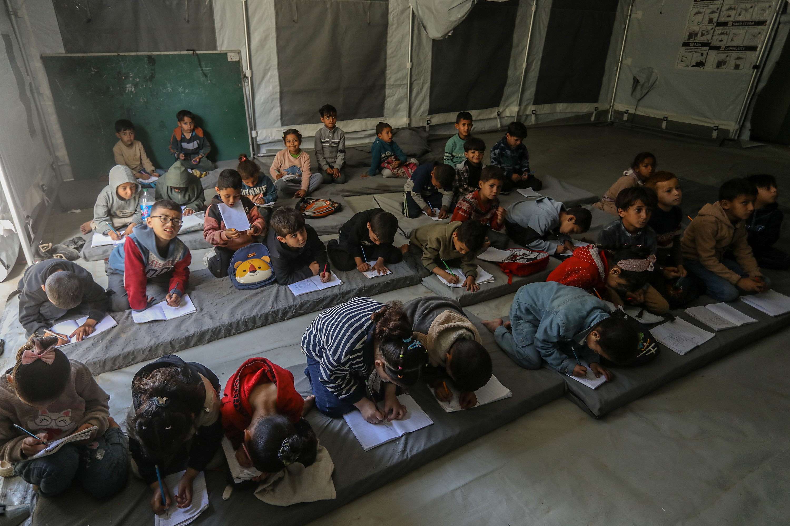 Gazze Şeridi'nin kuzeyindeki Cibaliya Mülteci Kampı'nda bir grup gönüllü öğretmen, İsrail'in, 2 yıl boyunca sürdürdüğü saldırılarla çöken eğitim sistemini yeniden canlandırabilmek ve çocukların eğitim hakkından mahrum kalmaması için bir okul açtı.
