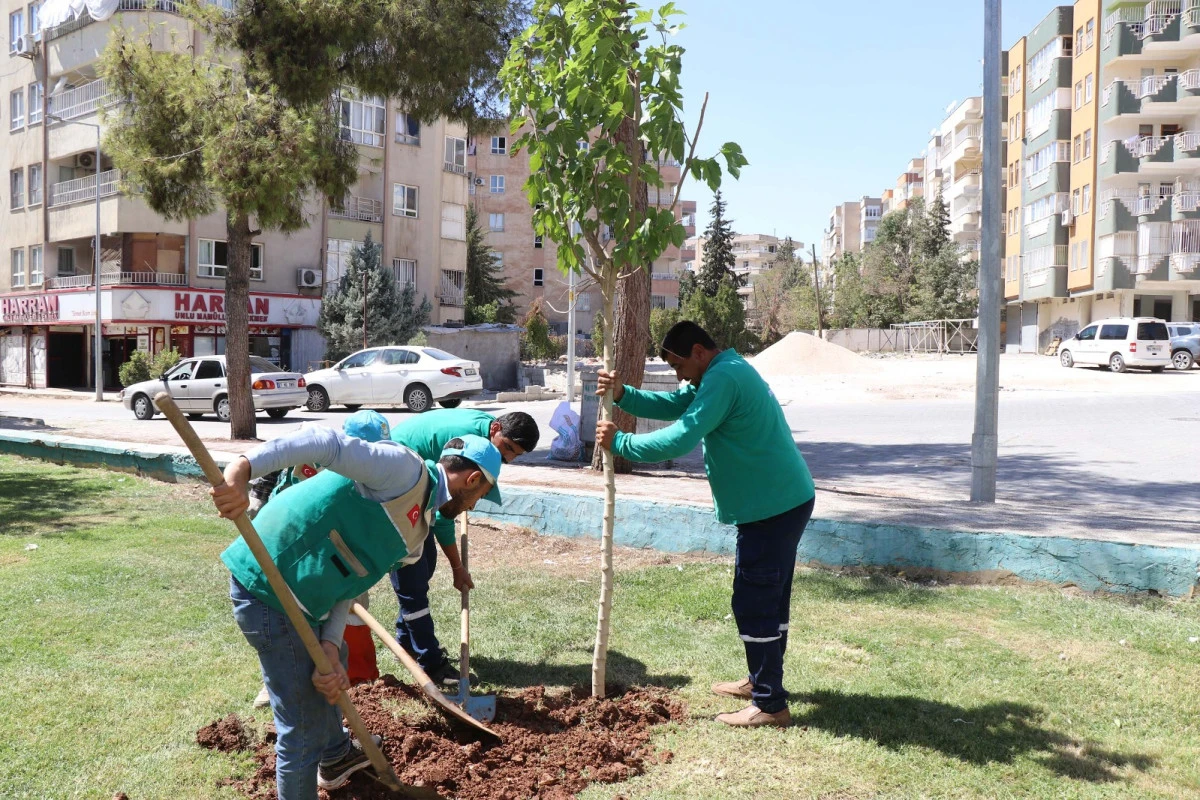 Haliliye Belediyesi Kırsal Hizmetler Müdürlüğü, parklarda mevsim çalışmaları kapsamında ağaçlandırma çalışmalarını hummalı şekilde sürdürüyor.