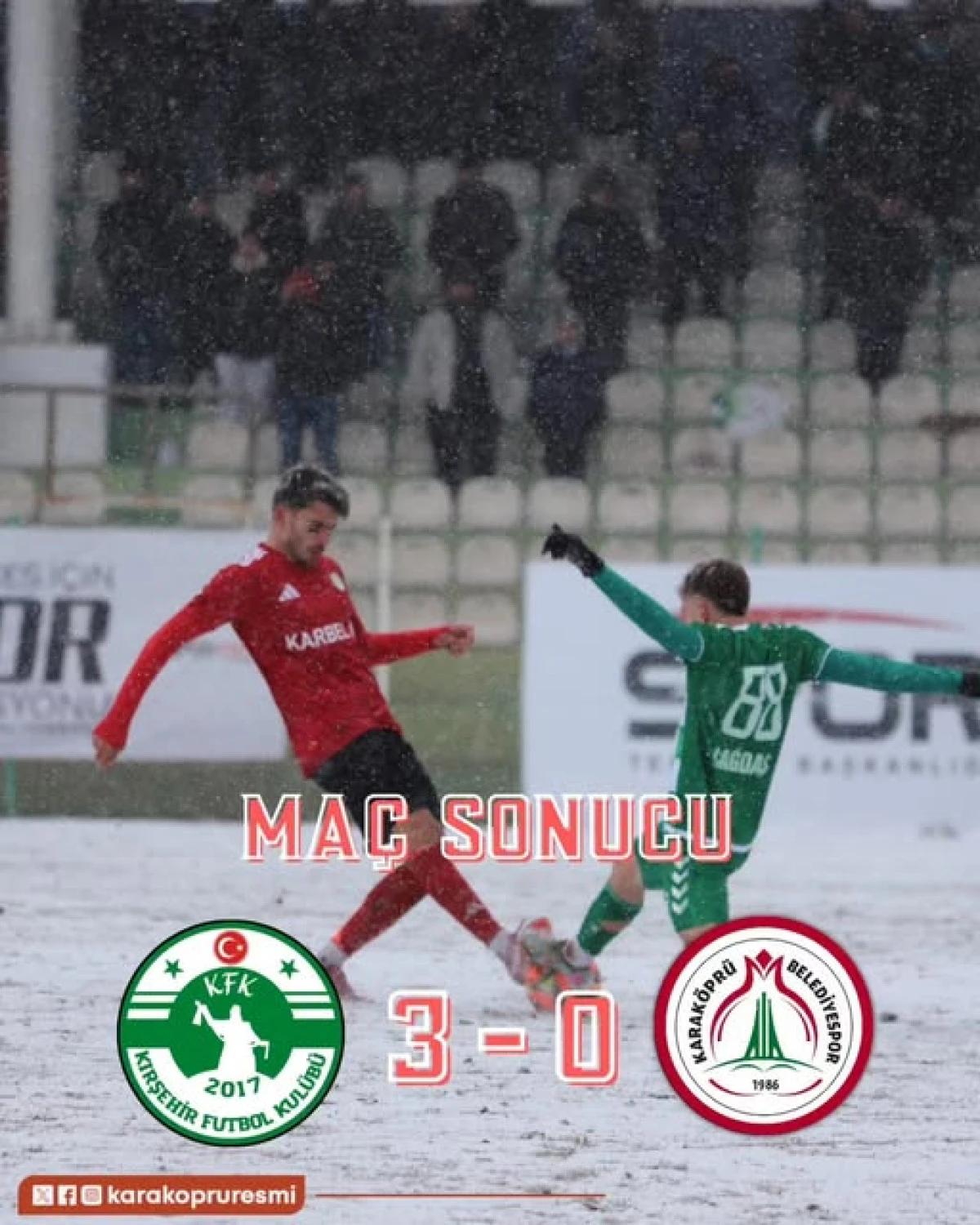 Karaköprü Belediyespor, Lig 17.haftasında Kırşehir deplasmanında ligin en zor deplasmanlarından biri sayılan Kırşehir Futbol Kulübü karşısında 3-0’lik kötü bir mağlubiyet alarak evine döndü. Altın değerindeki 3 puanı heba etti.