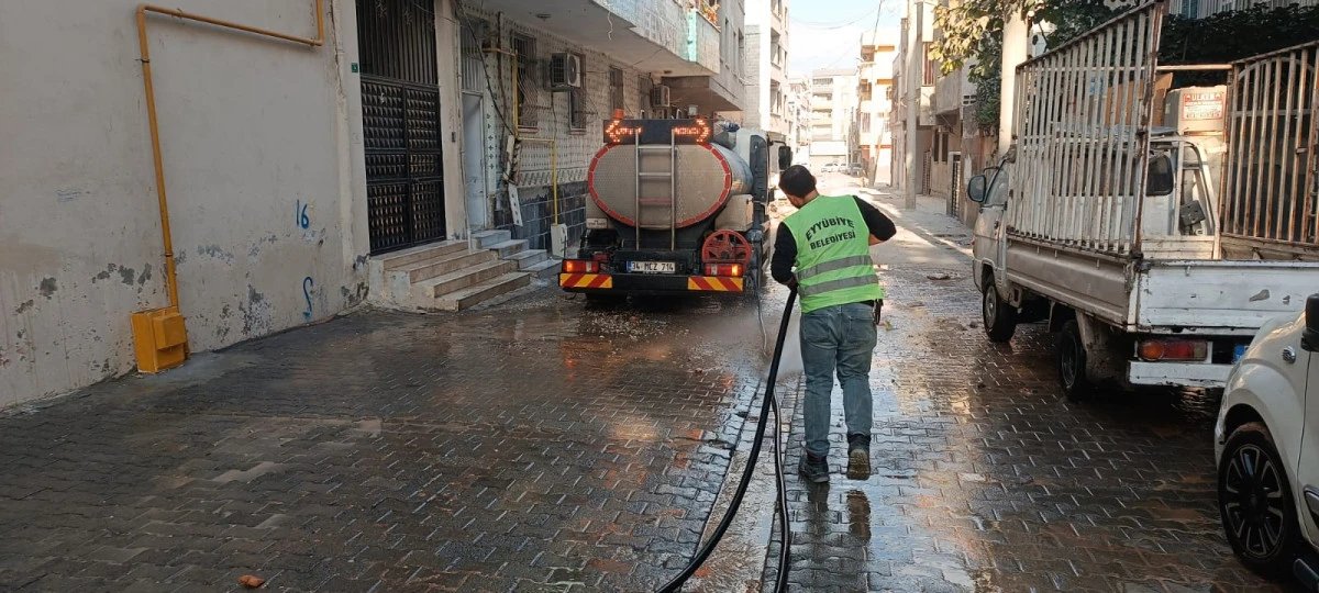 Eyyübiye Belediye Başkanı Mehmet Kuş’un yönlendirmesiyle sürekli tertemiz bir ilçe için görev alan temizlik çalışanları, şehrin en büyük ilçesinde tüm sokakları tek tek yıkayarak temizliyor. Yıkama hizmetini artık bir rutin haline getiren Temizlik İşleri Müdürlüğü çalışanları, gün doğmadan başladıkları mesailerine gecenin ilerleyen saatlerine kadar devam ediyor.