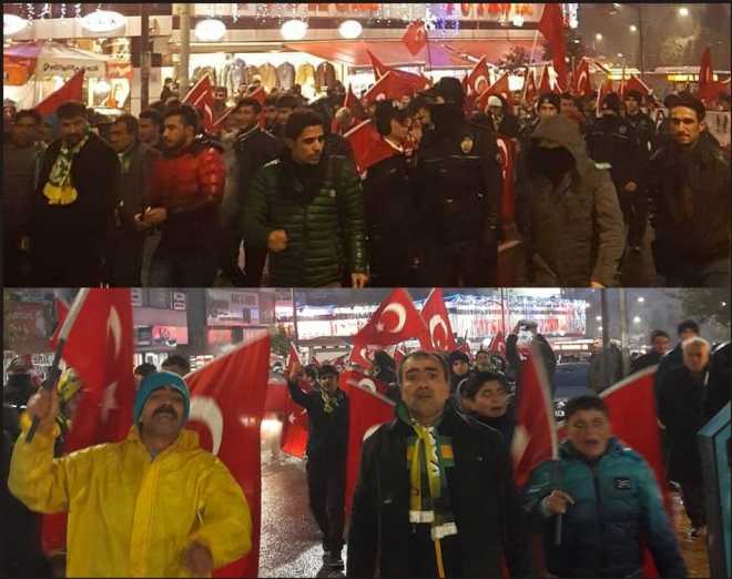 Şanlıurfaspor’un taraftar grupları, Dolmabahçe ve Maçka Parkı'nda yaşanan saldırı nedeniyle 13 Aralık Salı günü saat 17:00'da Dergâh Camisi önünden Büyükşehir Belediyesi önüne kadar yürüyerek teröre tepki için tek vücut oldular.