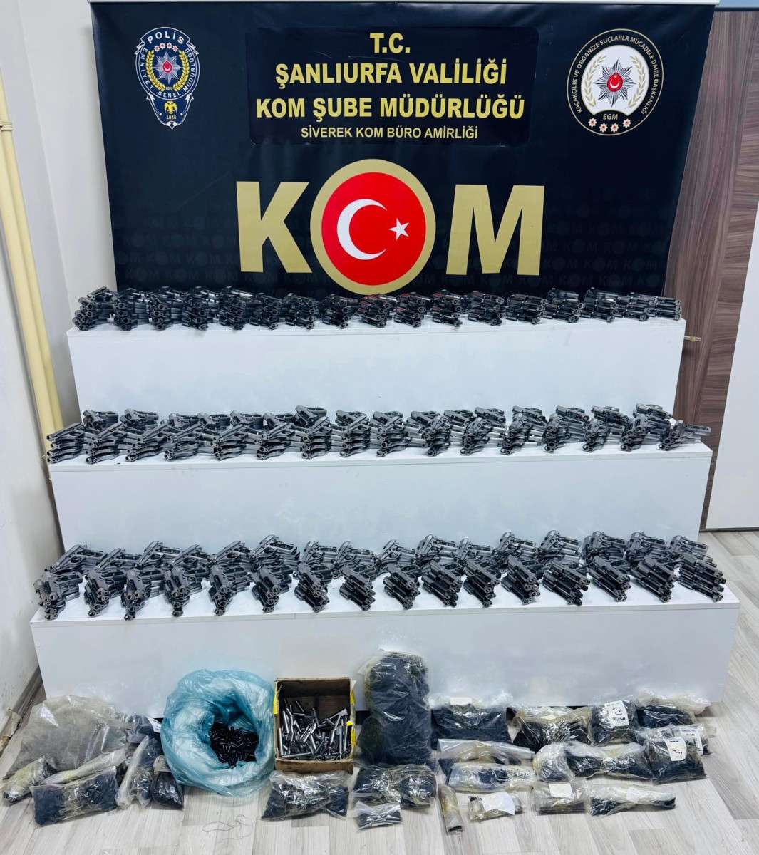 Şanlıurfa'nın Siverek ilçesinde KOM Şube Müdürlüğü görevlilerince gerçekleştirilen operasyon sonucu, 8 Aralık 2024 tarihinde bir araçta yapılan aramada büyük miktarda silah parçaları ele geçirildi.