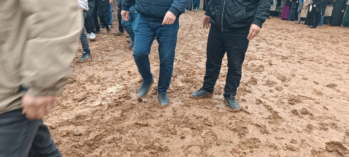 Suruç Uludüz köyünde yaşamına son veren Osman Yamaçın defin işlemlerinde mezarlıkta vatandaşlar çamurda yürümekte güçlük çekti
