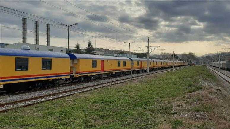 Türkiye Cumhuriyeti Devlet Demiryolları (TCDD), depremzede vatandaşların barınmalarını sağlamak amacıyla Sakarya'da üretilen 10 vagonlu konaklama trenini bölgeye gönderdi.