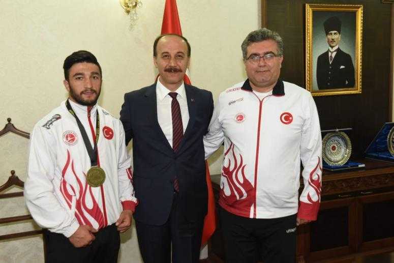 Şanlıurfa Valisi Abdullah Erin, 19-27 Ekim Tarihleri arasında Bosna-Hersek’te yapılan Dünya Kıck Boks şampiyonada Dünya 3.’sü Olan Urfalı sporcu Mevlana Altuntaş ve Kıck Milli takım teknik direktörü Murat Akaltun’u makamında kabul ederek başarılarından dolayı tebrik etti.